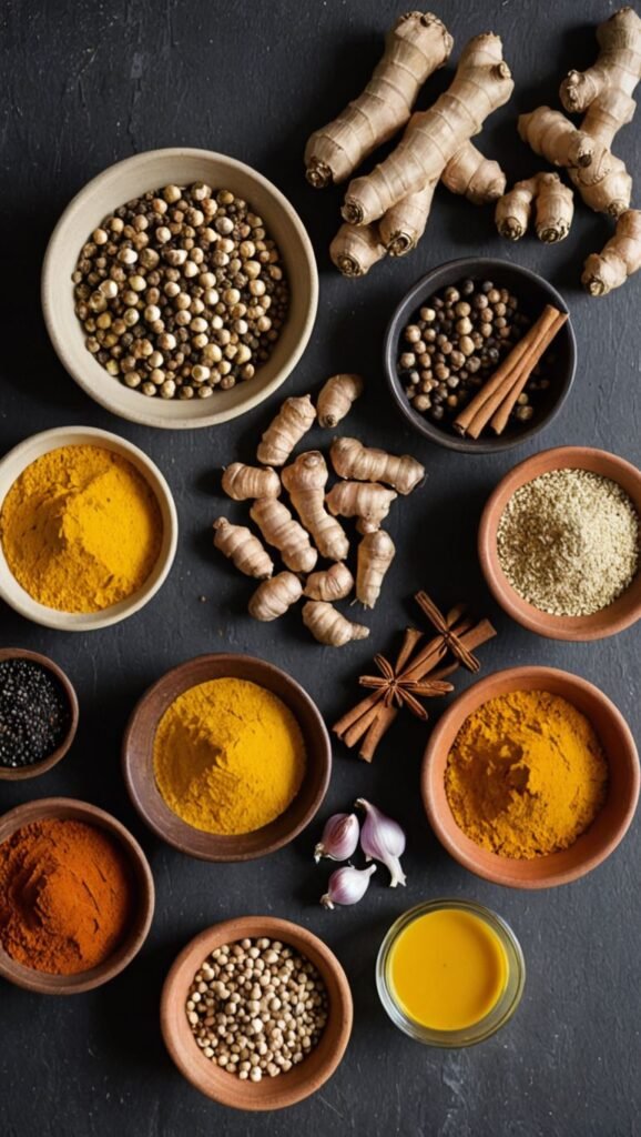- Ginger and turmeric reduces inflammation and aids digestion.